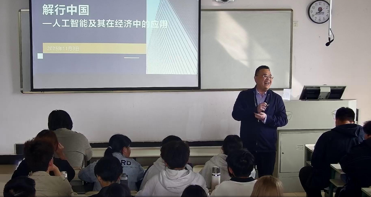 11月3日,我校第九期“解行中国”课程特邀学校校长助理强静仁教授担任主讲人,为数字经济(商务分析方向)2501班、2502班的全体同学带来了题为《解行中国——人工智能及其在经济中的应用》的精彩讲座。
