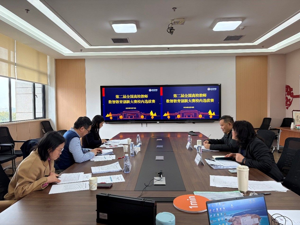 为扎实做好第二届全国高校教师数智教育创新大赛参赛组织工作,选拔优秀参赛团队,3月18日下午,我校校内选拔赛在行政楼201会议室顺利举办。本次选拔赛邀请三位校外评审专家组成评审组,学校顾问冯永平出席本次选拔赛,教务处副处长马光菊主持会议。