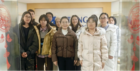下午2点,文声芳一行来到武汉市语源信息咨询有限公司,看望财经翻译师实习的学生。该公司专注于本地化翻译与语言技术解决方案,我院7名学生在语源信息实习,目前在笔译校对岗位进行实习。语源信息负责人田国军介绍,“企业配备了资深译审担任导师,结合真实项目开展‘一对一’指导,帮助学生掌握Trados等专业工具,提升翻译效率与质量。财经翻译因为涉及很多准备上市公司的机密文件,不太可能被AI所取代。希望有志者专注于自身能力的提升,这一领域目前来看仍然大有可为”。