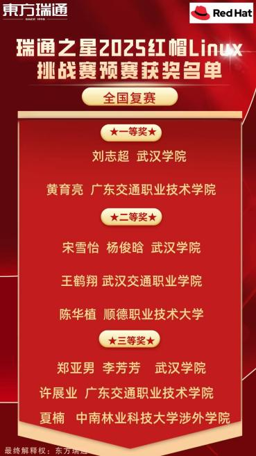 此次武汉学院学子在红帽挑战赛中的亮眼表现,彰显了学校在网络工程专业教学中的扎实积淀。未来,武汉学院将持续深化产教融合,加强与行业头部企业的合作,不断优化人才培养方案,助力更多学子在专业领域发光发热,为开源技术产业发展输送更多优质人才。